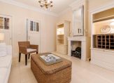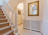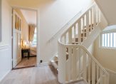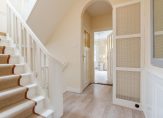 Entree met vestibule en meterkast, gang met glas in lood deur naar ruime hal en garderobe. Apart toilet met fonteintje. Deur naar kamer aan de voorzijde die geschikt is als study, tv-kamer of logeerkamer.