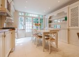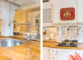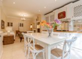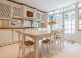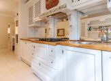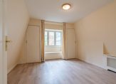 Aan de achterzijde de zitkamer met schouw annex woonkeuken voorzien van prachtig houten werkblad, 4-pits gas op glaskookplaat, koelkast, vriezer, vaatwasser en magnetron. Openslaande deuren met roedeverdeling naar besloten terrasje op het zuidoosten.