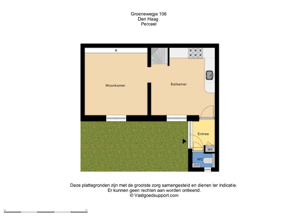 Vanaf de straat geeft een afgesloten poort toegang tot het hofje, entree woning via voortuin, hal, modern toilet met fonteintje, ruime eetkeuken 4.05×3.83 voorzien van alle apparatuur, doorloop naar zitkamer 4.05×3.77 voorzien van ingebouwde boekenkasten.