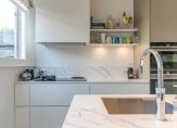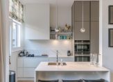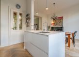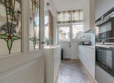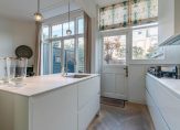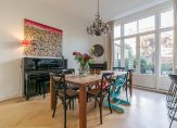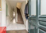 Voortuin met afdak voor fietsen, entree, vestibule met garderobekast, dubbele deuren naar gang met marmeren vloer, trapkast, modern toilet met fontein, toegang naar kelder ca. 3.49×2.09, prachtige kamers en suite totaal ca. 12.02×4.02/3.89 met fraaie parketvloer, marmeren schouwen waarvan 1 met een allesbrander, suiteseparatie met vaste kasten, fraai plafondlijstwerk en glas-in-lood bovenlichten, modern luxe open keuken met spoeleiland, veel ladekasten, vaatwasser, 2 ovens, inductiekookplaat met een enkele gasbrander, koelvriescombinatie, dubbele openslaande deuren en een enkele deur geven toegang naar de ruime en zonnige tuin ca. 10.00×6.70.