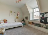 Trap naar 1e etage, overloop, apart toilet, ruime badkamer ca. 3.58×2.20 voorzien van ligbad, aparte douche en wastafelmeubel (huidige wordt vervangen voor een nieuw meubel), zeer ruime achterslaapkamer ca. 4.92×4.03 met vaste kast, ruime voorkamer ca. 5.82×3.83 met vaste kast, boekenkastenwand en openslaande deuren naar veranda ca. 3.83×1.00, voorzijkamer ca. 3.81×2.20.