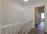 Trap naar 2e etage, overloop met daklicht, apart toilet met fontein, aan de voorzijde een ruime slaapkamer met erker en een zijkamer, tussengelegen badkamer voorzien van ligbad, douche en wastafelmeubel, aan de achterzijde eveneens een ruime slaapkamer met schuifpui naar balkon, gang met stook- en wasruimte, 2e badkamer voorzien van douche en wastafelmeubel, ruime zijkamer.