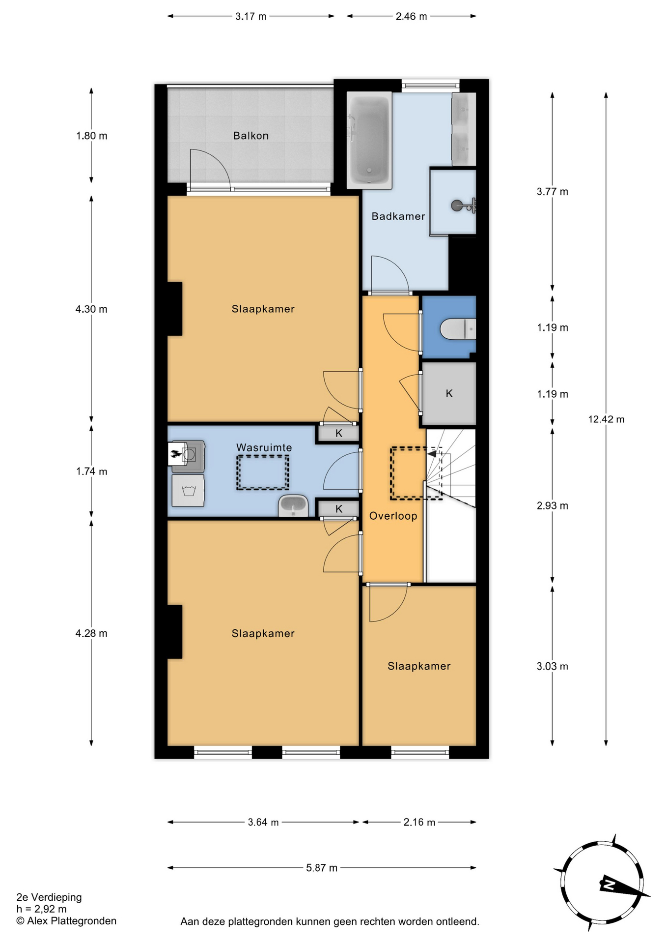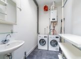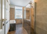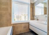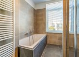 Trap naar 2e etage, overloop, toilet en vaste kast, nieuwe luxe badkamer voorzien van ligbad, douche en wastafelmeubel, 3 slaapkamers, een ruim balkon en een ruime bergkamer met opstelplaats CV-ketel, wasmachine en wasdroger.