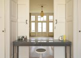 Entree begane grond, zeer ruime vestibule met marmeren vloer, ornamenten plafond en wanden, meterkast, origineel betegelde lambrisering en tochtseparatie met geslepen glas naar eveneens ruime gang met marmeren vloer, originele marmeren schouw, origineel plafond, ruimte onder de trap, toilet in stijl van het huis met fontein en deur naar ruime kelder ca. 5.91/3.49×2.96 met originele vloertegels en koekoek, heerlijk lichte kamers en suite met riante maatvoering ca.14.37×4.36 met originele suiteseparatie met schuifdeuren en 4 vaste kasten, erker aan de voorzijde, 2 zwart marmeren schouwen met gas open haard, ornamenten plafonds, convectorput aan de achterzijde en openslaande tuindeuren, grote moderne eetkeuken in de stijl van het huis ca. 4.65/4.08×3.07 met L-vormig natuurstenen aanrechtblad, rvs spoelbak, vaatwasser, “Boretti” fornuis met 5-pits kookplaat en oven, originele schouw met afzuigkap, originele servieskast, marmeren vloertegels en deur naar zonnige achtertuin op het Zuid Oosten met stenen schuur, terrassen en borders.