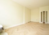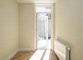 Gezamenlijke entree van het gebouw, hal met fraaie visgraat parketvloer, dubbele glazen deur naar riante woonkamer met hoog plafond en gunstige lichtinval dankzij grote raampartij aan de voorzijde. De woonkamer beschikt over alle aansluitingen zodat de koper naar eigen wens een keuken kan laten installeren. De ruime slaapkamer is rustig aan de achterzijde gelegen en beschikt over eigen patio van ca. 10 m². Voor de tussengelegen badkamer geldt hetzelfde als de keuken en deze kan naar eigen wens van de koper worden geïnstalleerd.