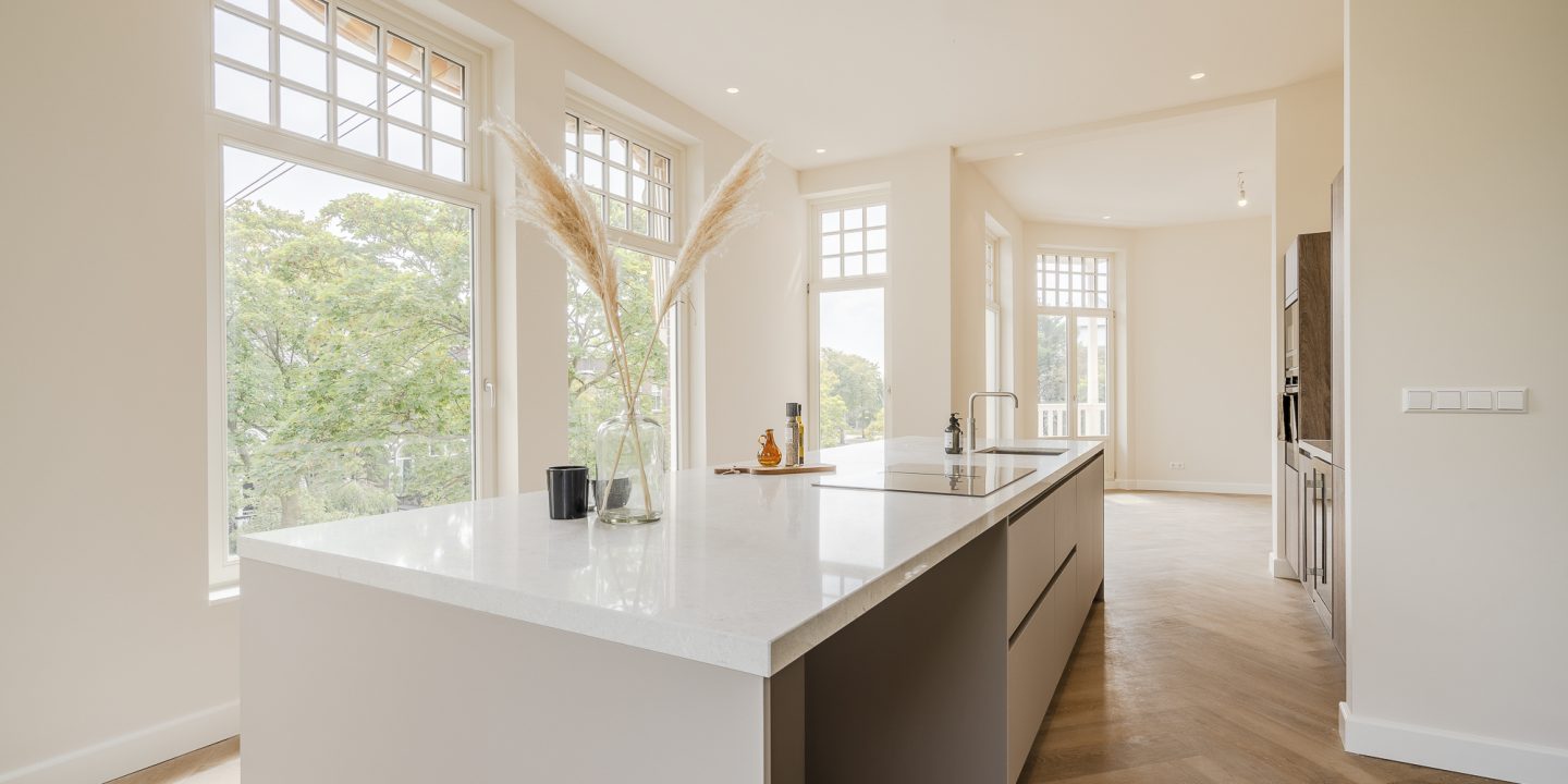 Deze prachtige vrijstaande villa is in 2025 zeer hoogwaardig getransformeerd naar drie prachtige woonappartementen van uitzonderlijke klasse en voorzien van schitterende open keukens, stijlvol sanitair, hard houten kozijnen met HR++ glas, welgekozen kleuren, nieuwe installaties, volledig vloerverwarming en geïsoleerd gevels. Het betreft een perfecte harmonie tussen karaktervolle uitstraling en modern wooncomfort.