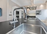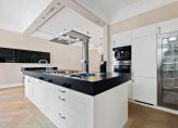 Via de gang en de binnentrap bereikt u het souterrain. Daarnaast is het souterrain ook buitenom bereikbaar via de voortuin, hal en gang. In het souterrain bevinden zich de slaapvertrekken en de wellness alsmede de 2e keuken, badkamer, separaat toilet , bergkast en een enorme wijnkast met klimaatkast voor de fijnproevers. Aan de voorzijde van het appartement is de royale masterbedroom gelegen. Deze zeer ruime slaapkamer is uitgerust met een grote inloop-garderobe en een eigen keuken. Ook deze keuken is van alle gemakken voorzien van o.a. een koelkast, combi-oven, inbouw gaskookplaat, afzuigkap enz. ideaal voor een inwonend kind, een au-pair of voor een vroeg kopje koffie/ ontbijtje op bed.