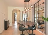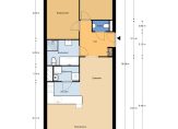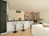 Ruime hal met meterkast en modern toilet met fontein, zeer ruime en lichte woonkamer met nieuwe luxe open keuken voorzien van inbouwapparatuur en eetbar, naast de keuken bevindt zich een ruime bijkeuken met de CV-ketel en de mechanische ventilatie-unit, opstelplaats voor wasmachine en droger en voldoende bergruimte.