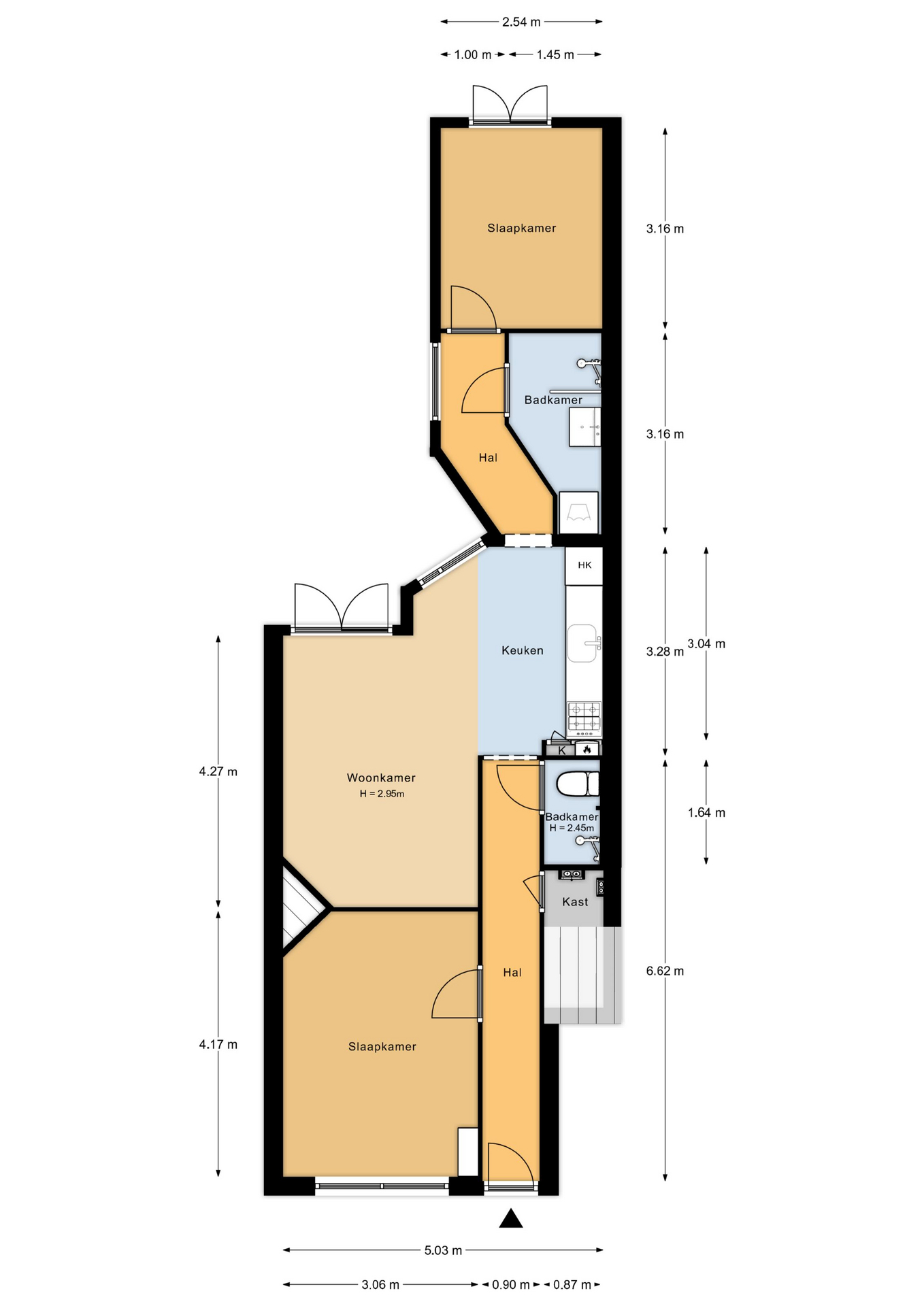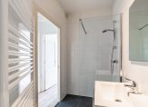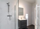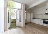 Eigen entree, hal met diepe trapkast, apart toilet met wandcloset en vaste kast met cv-ketel, slaapkamer aan de voorzijde met grote raampartijen en hoog plafond, woonkamer rustig gelegen aan de achterzijde met moderne open keuken voorzien van inbouwoven, koel-/vriescombinatie en 4-pits gaskookplaat. De woonkamer heeft openslaande deuren naar de achtertuin die op het zuidoosten is gelegen. De tweede ruime slaapkamer is rustig gelegen aan de achterzijde, grenst aan de tuin en heeft eveneens openslaande deuren. De tussengelegen badkamer is voorzien van fraai tegelwerk, inloopdouche met glazen wand, handdoekradiator en meubel met wastafel.