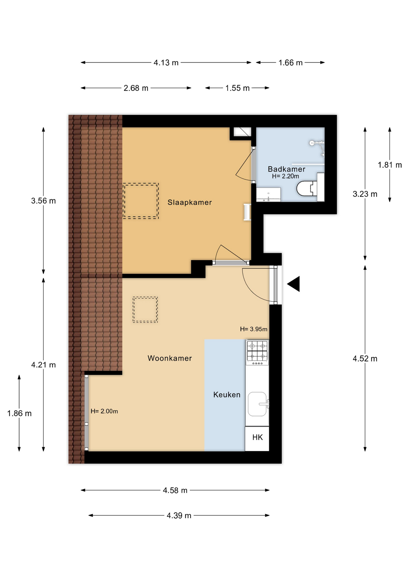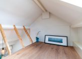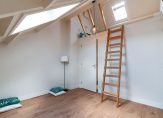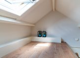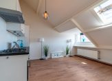 Gezamenlijke entree, trap naar de derde etage, entree appartement, woonkamer met dakkapel en diverse daklichten, open keuken voorzien van gaskookplaat, wasemkap, gootsteen en koel-/vriescombinatie. Vanuit de woonkamer de ruime slaapkamer met daklicht en fraai betegelde badkamer voorzien van badkamermeubel met wastafel, wandcloset en inloopdouche met glazen wand.