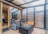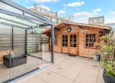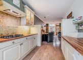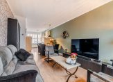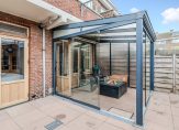 Eigen entree op de begane grond, hal met meterkast en garderobekast, woonkamer met gunstige lichtinval dankzij vrije ligging aan een groen plein, moderne open keuken voorzien van 4-pits gaskookplaat, heteluchtoven, koelkast en vaatwasser. Vanuit de woonkamer de serre met glazen pui en sfeervolle gashaard (ter overname conform lijst van zaken). De tuin is voor dit soort woningen ruim van formaat, perfect gelegen en op het zonnige zuidwesten en voorzien van grote schuur met elektra. Aan de achterzijde de hoofdslaapkamer met kastenwand en deur naar de tuin, aan de voorzijde de tweede slaapkamer die in gebruik is als kastenkamer en een tussengelegen moderne badkamer voorzien van grote witte wandtegels, wastafel en inloopdouche met glazen wand.