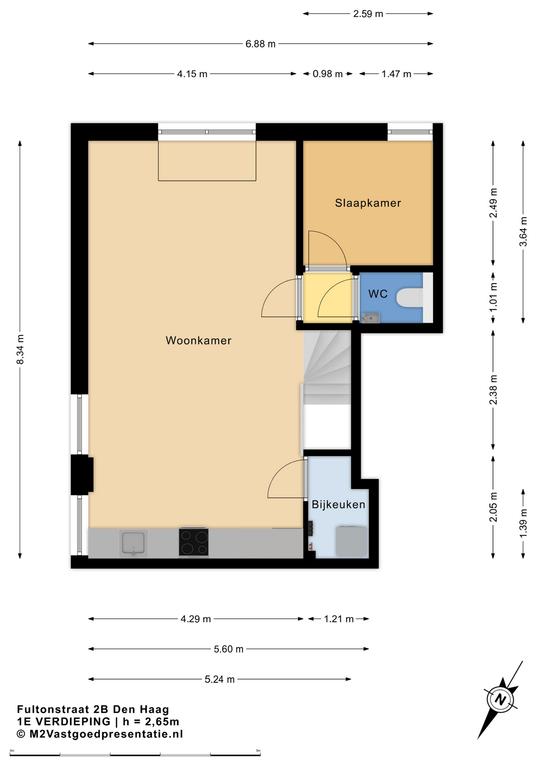 Indeling 2 slaapkamer appartement begane grond en 1e verdieping achterzijde: