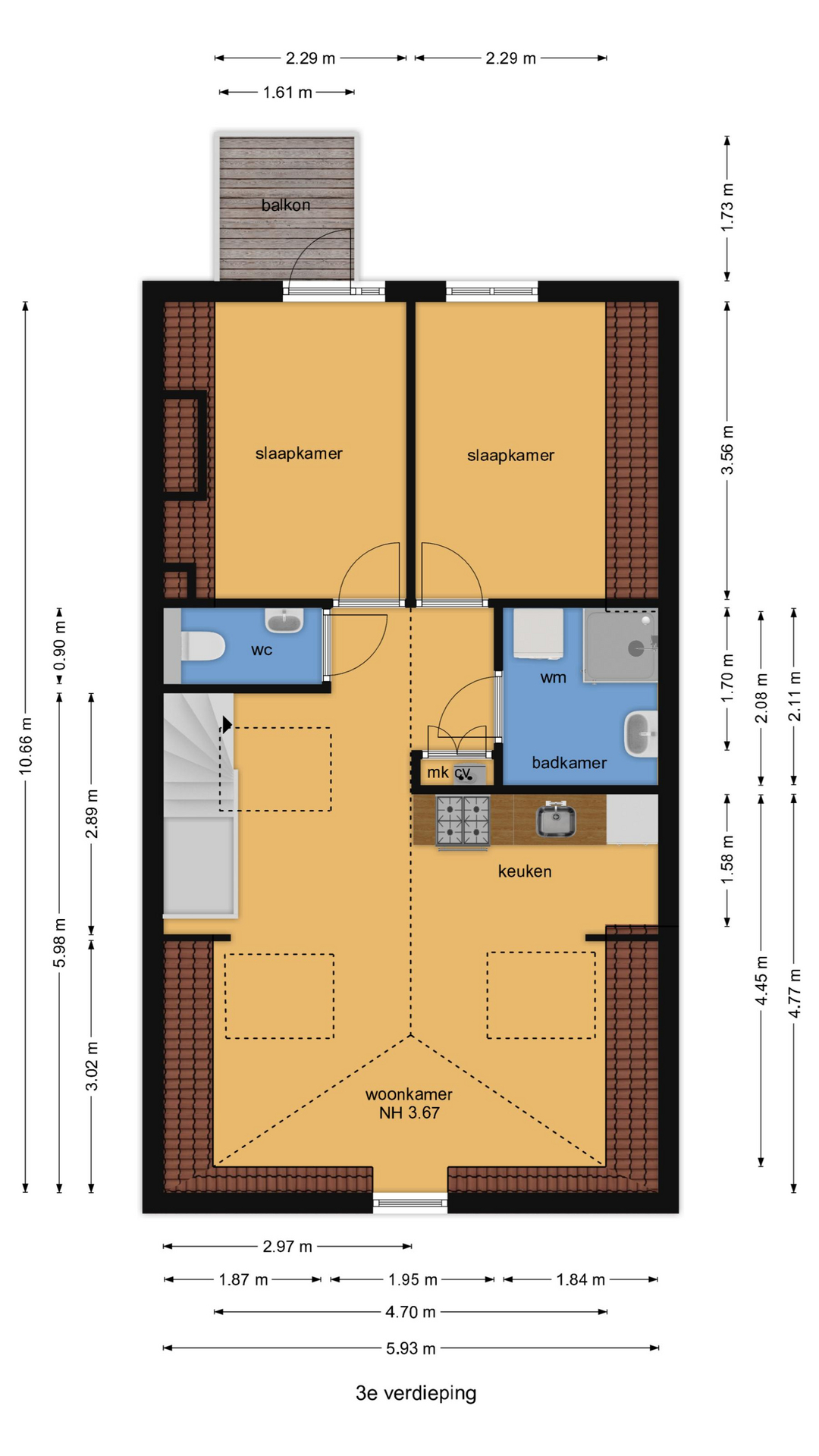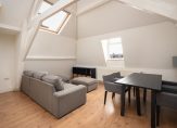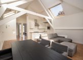 Gezamenlijke entree op de begane grond, hal met de meterkast, trappenhuis naar de 3e etage, entree appartement, ruime zeer licht en zonnige woonkamer met veel dakramen, laminaatvloer en een open keuken voorzien van inbouwapparatuur; combi-oven, gaskookplaat, koelkast met vriezer, vaatwasser en afzuigkap.