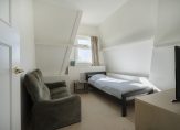 De derde etage is zeer efficiënt ingedeeld met 4 vrijwel gelijkwaardige slaapkamers en een tweede badkamer voorzien van douchecabine, wastafel en cv-ketel.