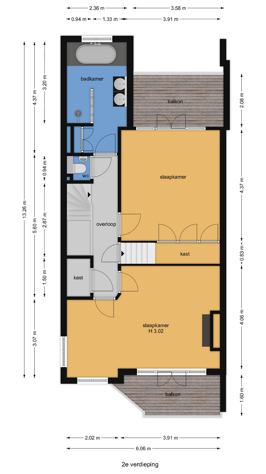 Vanuit de overloop de trap naar de tweede etage die eveneens over meer dan 3 meter hoog plafond beschikt, overloop met apart toilet en diepe linnenkast, schitterende doorgebroken slaapkamer aan de voorzijde met eigen balkon en vrij uitzicht over de Groot Hertoginnelaan, tweede ruime slaapkamer gelegen aan de achterzijde met inbouwkast, veel privacy en eigen terras. De badkamer op deze etage is gelegen aan de achterzijde en voorzien van keurig tegelwerk, ligbad, inloopdouche, natuurlijk licht en meubel met dubbele wastafel.