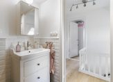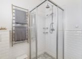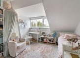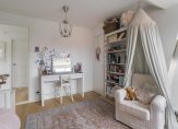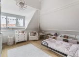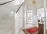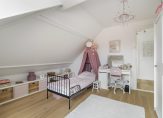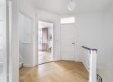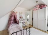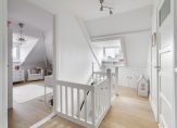Vanuit de hal de trap naar de eerste etage die eveneens is voorzien van visgraat parketvloer, overloop met vaste kast voor de wasmachine en droger, zijkamer aan de achterzijde met uitzicht over de kerk, uitgebouwde hoofdslaapkamer aan de achterzijde met nis voor kleding, vaste kast en erker. De schitterende hoekkamer aan de voorzijde beschikt over adembenemend vrij uitzicht over de vijver en het aangrenzende weiland. De badkamer op deze etage is voorzien van hoogwaardig tegelwerk, twee meubels met wastafel, wandcloset, natuurlijk licht, handdoekradiator en inloopdouche.
