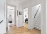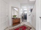 Entree via de voortuin met twee prachtige magnoliabomen, vestibule voorzien van meterkast, originele marmeren vloer en marmeren lambrisering, ruime hal met vaste kast en trap naar de kelder, toilet voorzien van fraai tegelwerk, wandcloset en fonteintje.