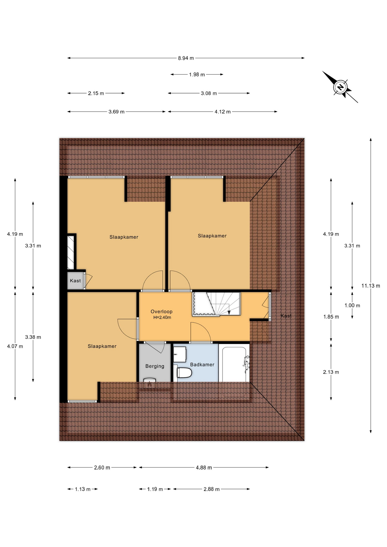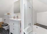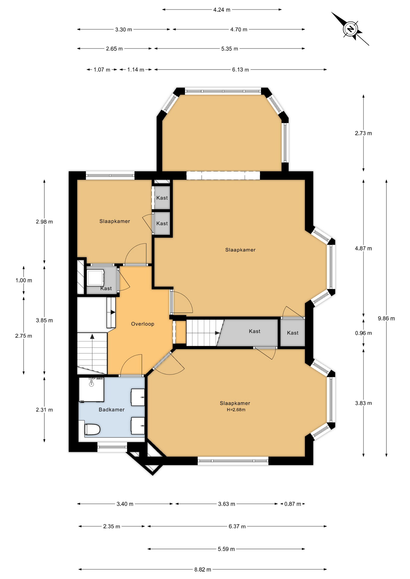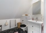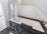Voorts trap naar de tweede etage, overloop met dakkapel en stookruimte, twee riante slaapkamers aan de achterzijde met dakkapel, de zesde en tevens laatste slaapkamer is nog ruim van formaat en gelegen aan de voorzijde van het object. Ook deze etage beschikt over een badkamer die is voorzien van fraai tegelwerk, ligbad met douche, toilet en meubel met wastafel. Verder op deze etage een vlizotrap vanuit de kleine slaapkamer naar bergvliering.