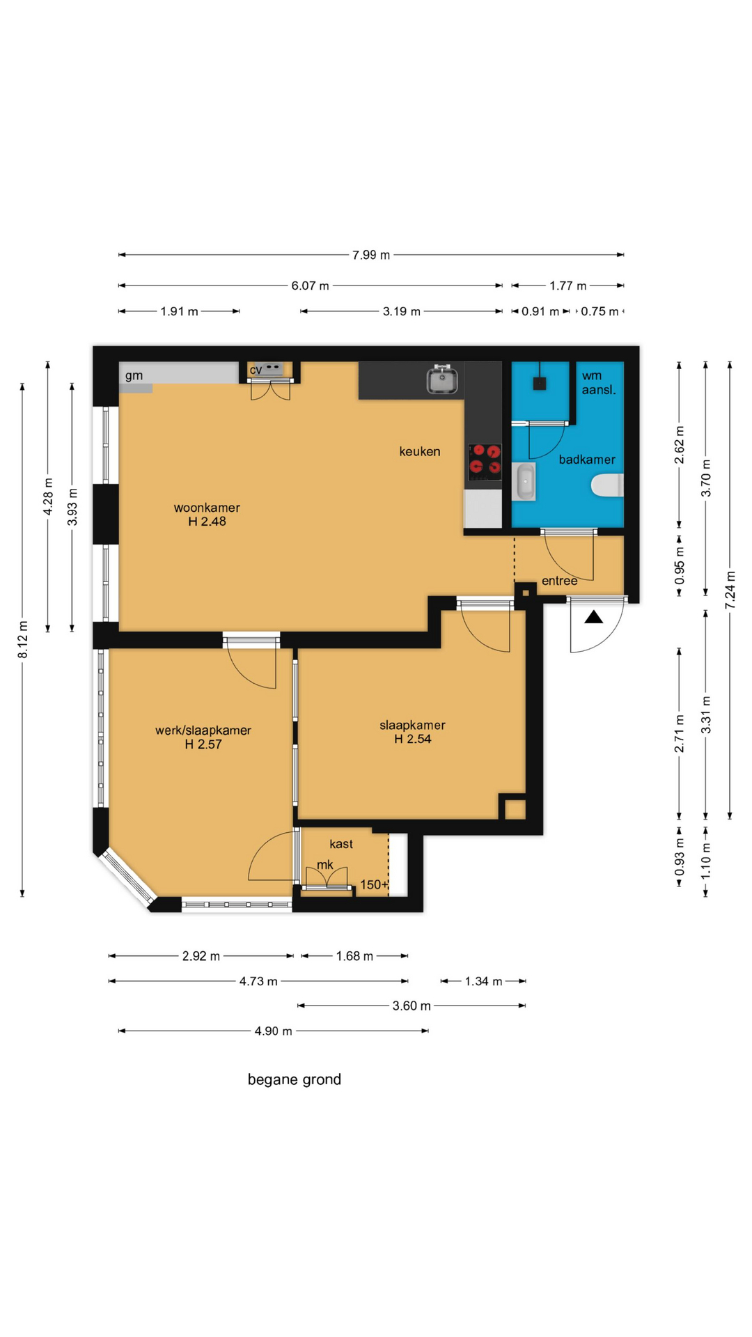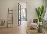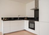 Gezamenlijke entree van gebouw, entree appartement, woonkamer met spectaculaire lichtinval dankzij grote raampartijen aan de voorzijde. De open keuken is voorzien van inductiekookplaat, koel-/vriescombinatie, combioven en vaatwasser. Aan de voorzijde de ruime slaapkamer wederom met zeer gunstige lichtinval dankzij ramen rondom en een ruime tussengelegen kamer met indirecte lichtinval. De moderne badkamer is voorzien van fraai tegelwerk, meubel met wastafel, handdoekradiator en inloopdouche met glazen deur.