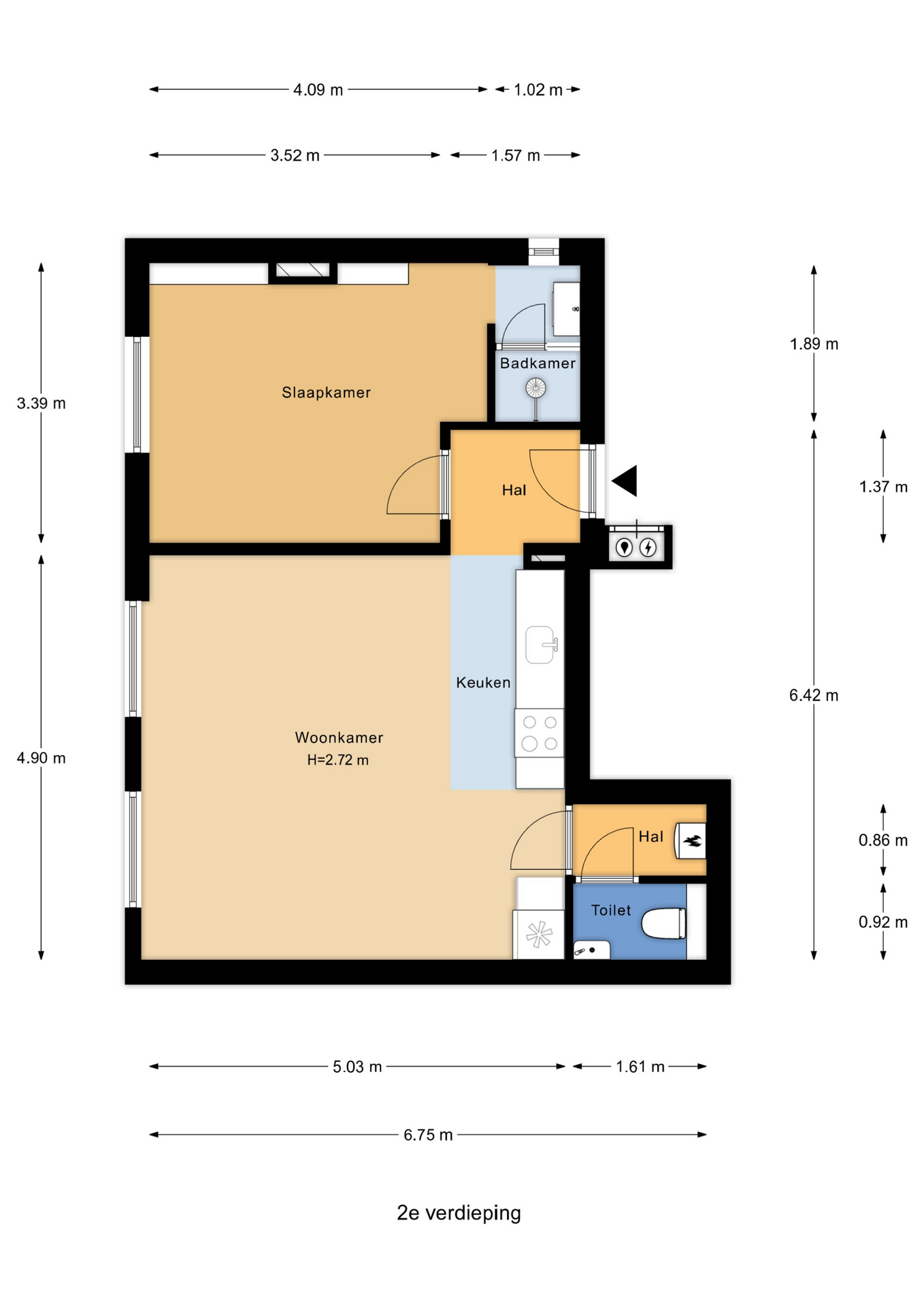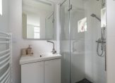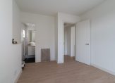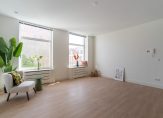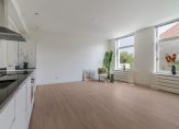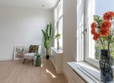 Gezamenlijke entree van gebouw, trap naar de tweede etage, de woning is rustig gelegen aan de achterzijde op de hoek van het voormalig herenhuis, entree appartement, woonkamer met spectaculaire lichtinval dankzij grote raampartijen aan de achterzijde. De open keuken is voorzien van inductiekookplaat, koel-/vriescombinatie, combioven en vaatwasser. Aan de achterzijde de ruime slaapkamer wederom met zeer gunstige lichtinval dankzij grote raampartij en moderne badkamer met fraai tegelwerk, badkamermeubel, handdoekradiator en inloopdouche.