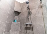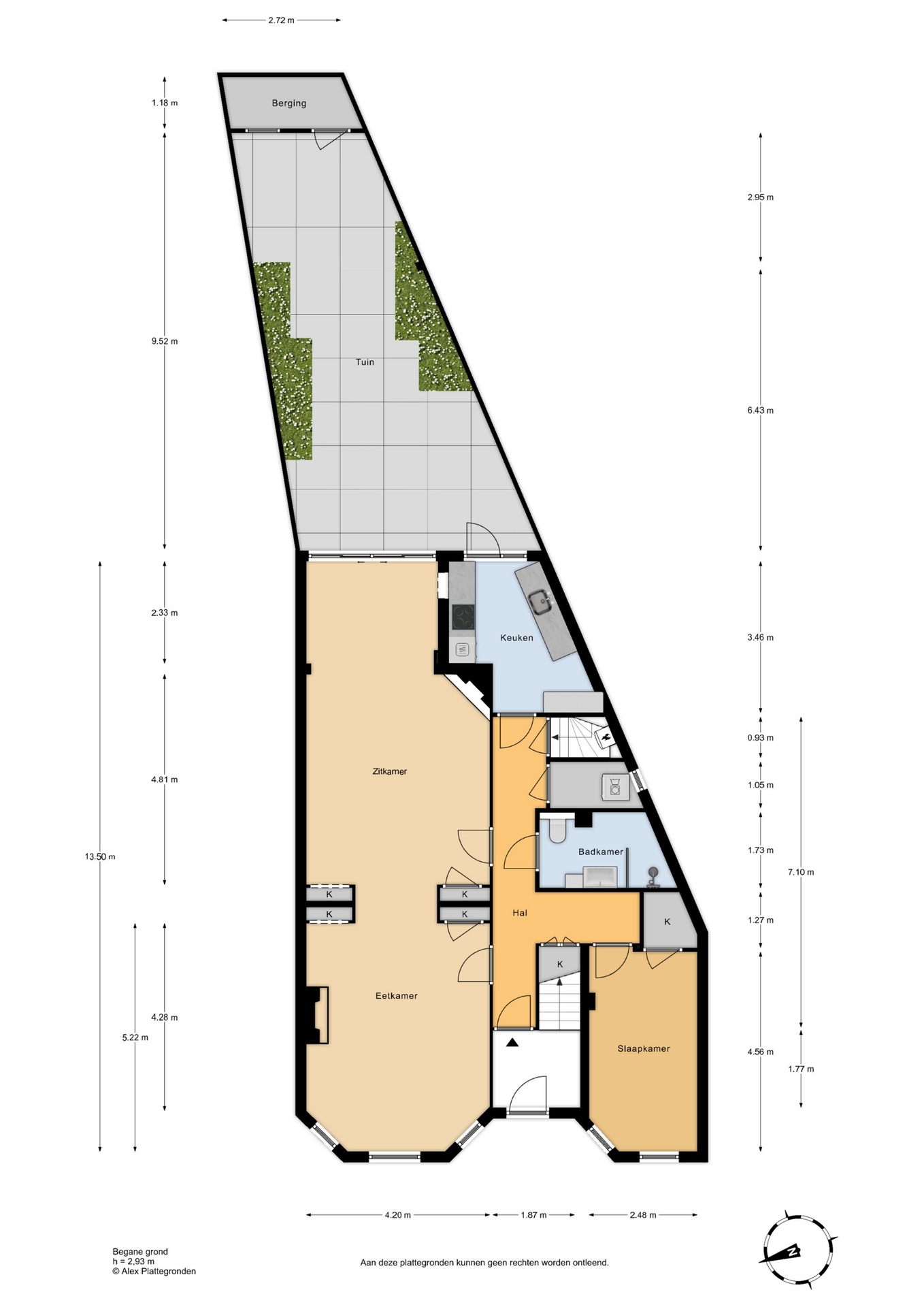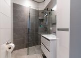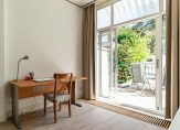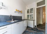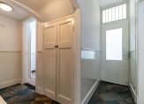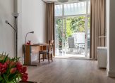 Entree van het gebouw, entree appartement, ruime hal met trap naar de kelder ca. 9 m², trapkast en inpandige berging met opstelplaats voor de wasmachine. Vanuit de hal de riante kamers en suite met erker aan de voorzijde, vaste kasten en schuifpui naar fraai aangelegde achtertuin op het zonnige zuidoosten. Aan de voorzijde de slaapkamer met inbouwkast, moderne tussengelegen badkamer met fraai tegelwerk, meubel met wastafel, wandtoilet en inloopdouche met glazen wand. Aan de achterzijde de luxe keuken voorzien van deur naar de achtertuin, koelkast, 4-pits gaskookplaat, doorgeefluik en vaatwasser.