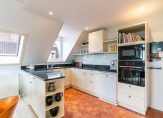 Gesloten entree van het gebouw, liftsleutel om de 4e etage te bereiken, hal die formeel onder de gezamenlijke ruimte van het gebouw valt maar waar geen ander appartement op is aangesloten, entree appartement, ruime doorgebroken hal met meterkast, apart toilet en werkkamer. De woonkamer is zeer gunstig gelegen op de zuidwest zijde van het gebouw met gunstige lichtinval dankzij diverse dakramen, fraai uitzicht over het Statenkwartier, balkon op het zuidwesten en woonkeuken in U-opstelling voorzien van hardstenen werkblad, inbouwoven, magnetron en vaatwasser. De bijkeuken beschikt over voldoende bergruimte, tweede entree/uitgang en opstelplaats voor wasmachine en droger.