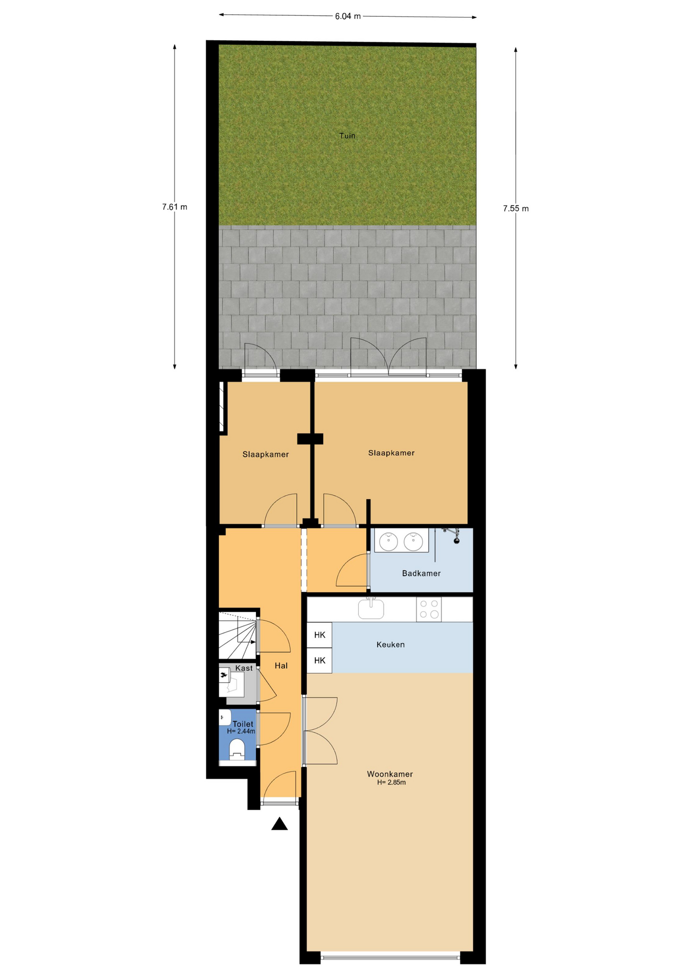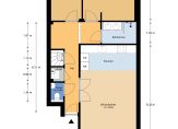 Entree van het gebouw, entree van de woning met hal voorzien van technische ruimte, trap naar de kelder en toilet voorzien van fraai tegelwerk, wandcloset en fonteintje. Vanuit de hal dubbele deuren met glasroedeverdeling naar ruime woonkamer met visgraat parketvloer en gunstige lichtinval dankzij grote raampartij aan de voorzijde. De nieuwe luxe keuken is voorzien van koel-/vriescombinatie, hoog model bakoven, combimagnetron, hardstenen werkblad en brede inductiekookplaat.