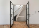 Entree van het gebouw, entree appartement met meterkast en trap naar de 1e etage, hal met zijkamer aan de voorzijde en apart toilet voorzien van fraai tegelwerk, wandcloset en fonteintje. Vanuit de hal dubbele deuren met glasroedeverdeling naar doorgebroken woon-/eetkamer met fantastisch vrij uitzicht over het karakteristieke Koningsplein. Aan de achterzijde de hoogwaardige open keuken voorzien van spoeleiland met hardstenen werkblad, wijnklimaatkast, kastruimte, vaatwasser en wandgedeelte voorzien van koel-/vriescombinatie, hoog model bakoven, combimagnetron, hardstenen werkblad, veel kastruimte brede inductiekookplaat. Aan de woonkamer grenst een fantastisch terras over de volle breedte dat gunstig is gelegen op het zuidoosten en over veel privacy beschikt. Er praktisch is de bijkeuken die grenst aan het wandgedeelte en gebruikt kan worden als inpandige berging. De lichtinval op deze etage is ronduit spectaculair te noemen dankzij de ca. 3 meter hoge plafonds en de grote raampartijen aan beide zijden.