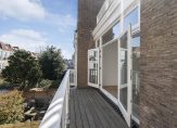 Aan de achterzijde de ruime hoofdslaapkamer met openslaande deuren naar tweede riante terras over de volle breedte van de woning. Aan de voorzijde nog zo’n goed formaat slaapkamer met uitzicht over het Koningsplein. Deze etage beschikt nog over twee zijkamers die gebruikt kunnen worden als slaap-, werk- of logeerkamer. De tussengelegen luxe badkamer beschikt over fraai tegelwerk, vrijstaand ligbad, daklicht, inloopdouche met glazen wand en meubel met dubbele waskom.