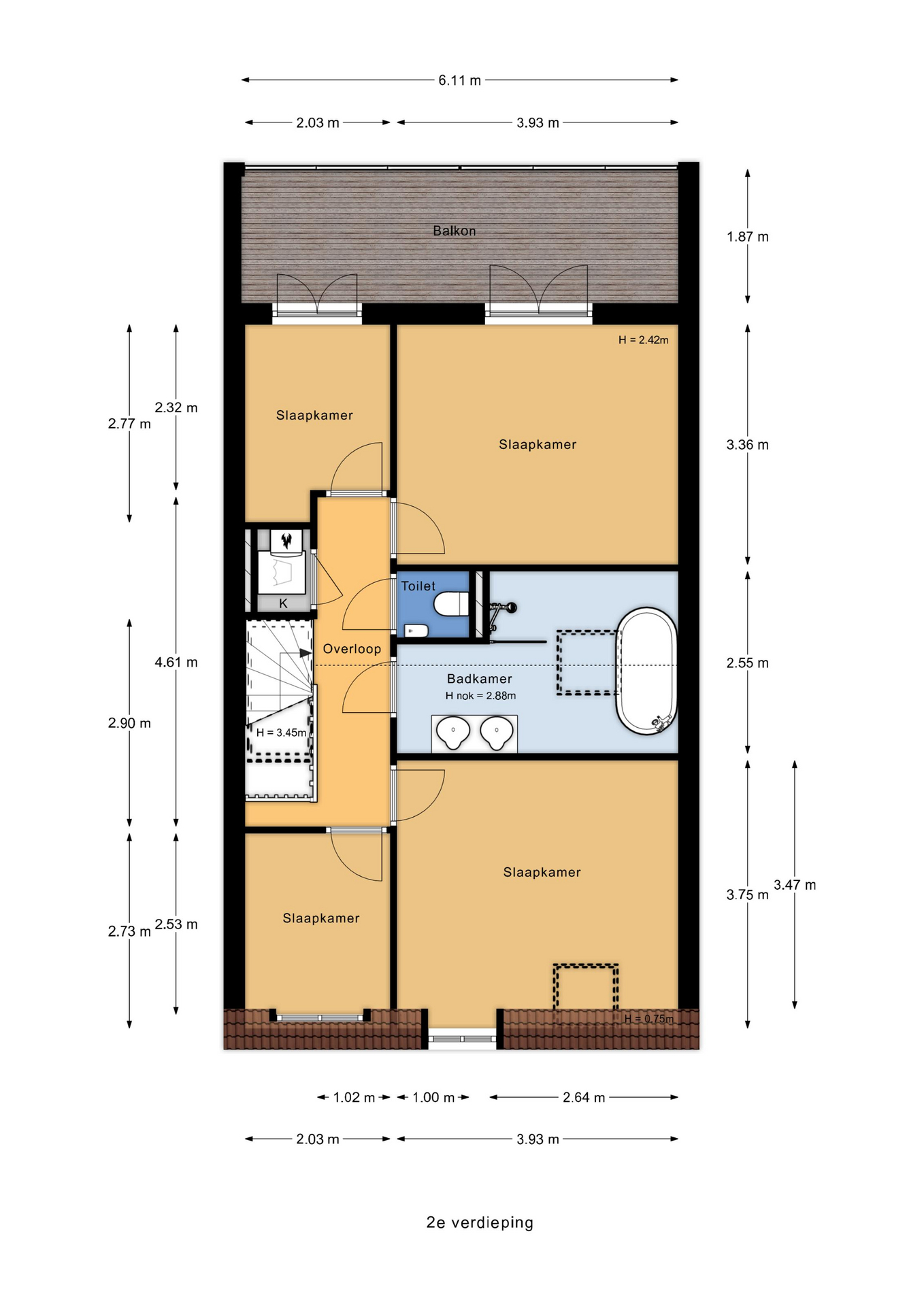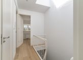 Vanuit de hal de trap naar de 2e etage, overloop met apart toilet en groot daklicht. De huidige eigenaar heeft een onherroepelijke omgevingsvergunning van de gemeente Den Haag voor de aanleg van een dakterras. Dit is tevens notarieel vastgelegd in de akte van splitsing. Indien gewenst kan een koper voor eigen rekening een vaste trap plaatsen en een dakterras aanleggen. Het huidige daklicht is te openen en zodanig geplaatst dat koper dat relatief eenvoudig een dakterras kan realiseren.