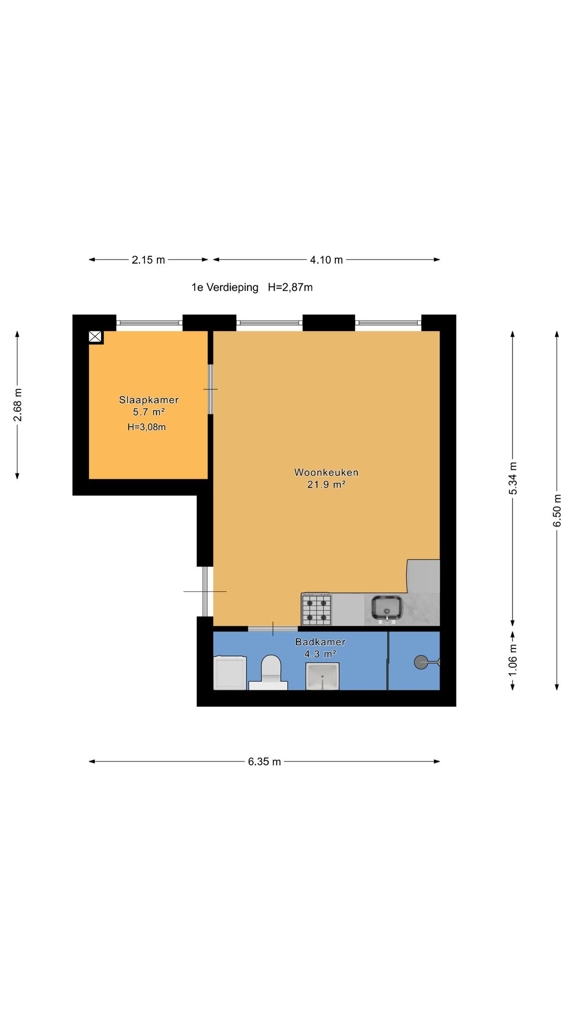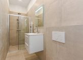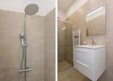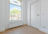 Gezamenlijk entree van het voormalig bovenhuis, trap naar de eerste etage, entree appartement, woonkamer met hoog plafond, visgraat vloer en karakteristieke glas in lood bovenlichten. De nieuwe luxe open keuken is voorzien van inductiekookplaat, koel-/vriescombinatie, whirlpool combioven, afzuigkap en vaatwasser. De slaapkamer is gelegen aan de voorzijde maar toch heel rustig dankzij het aangebrachte dubbel glas. De tussengelegen luxe badkamer is voorzien van fraai tegelwerk, inloopdouche met glazen deur, handdouche en regendouche, badkamermeubel met wastafel, handdoekradiator, spiegel met verlichting, toilet en wasmachineaansluiting.