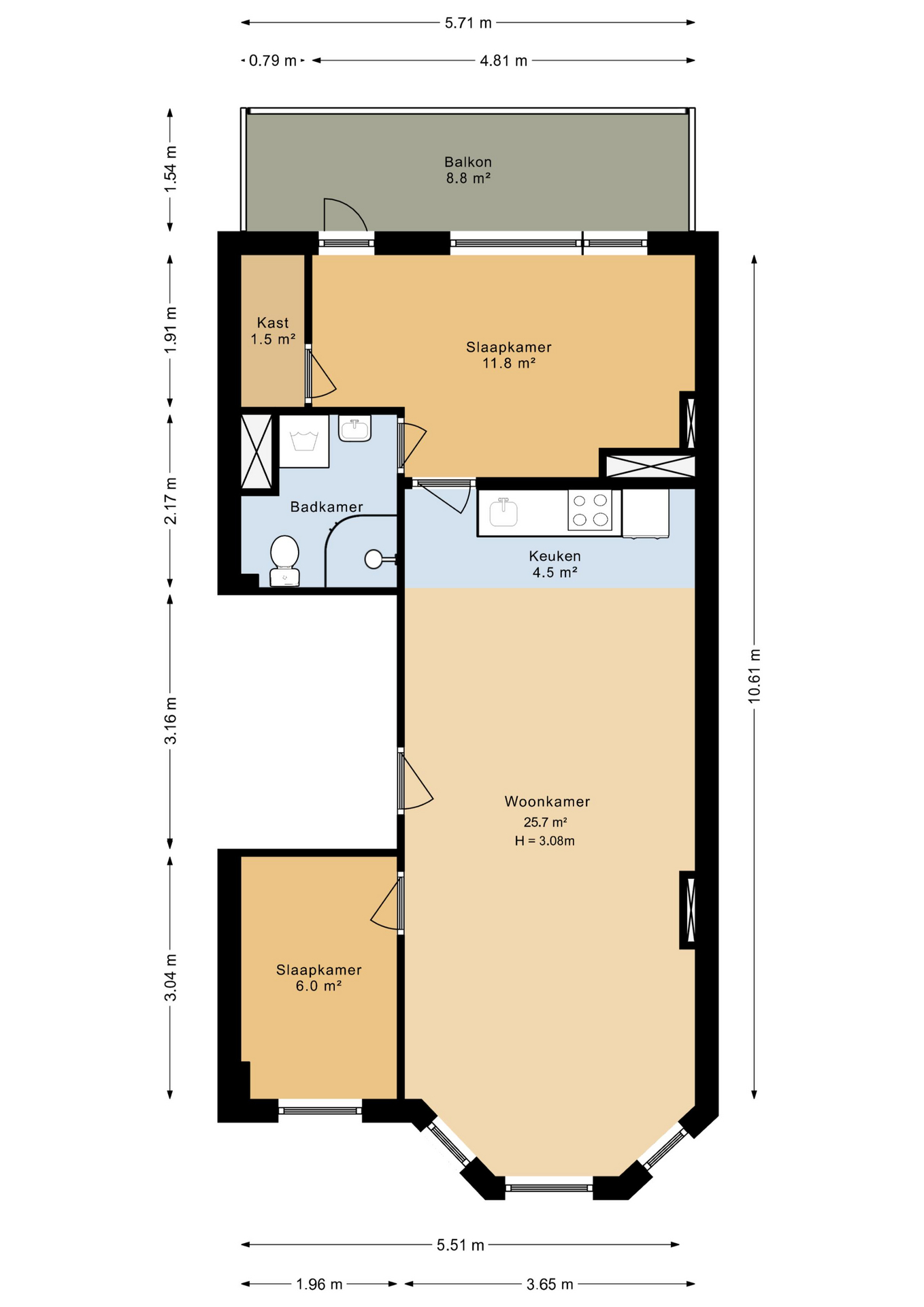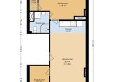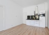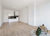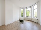 Entree op straatniveau met trap naar de eerste etage, entree appartement, woonkamer met spectaculaire lichtinval dankzij erker aan de voorzijde, moderne open keuken voorzien van hardstenen werkblad, 4-pits gaskookplaat, combioven en koelkast. Aan de achterzijde de riante hoofdslaapkamer met terras van ca. 9 m² op het zonnige zuidoosten en aan de voorzijde de tweede slaapkamer die ook ruim van formaat is. De tussengelegen badkamer is voorzien van modern tegelwerk, douchcabine, wastafel en handdoekradiator.
