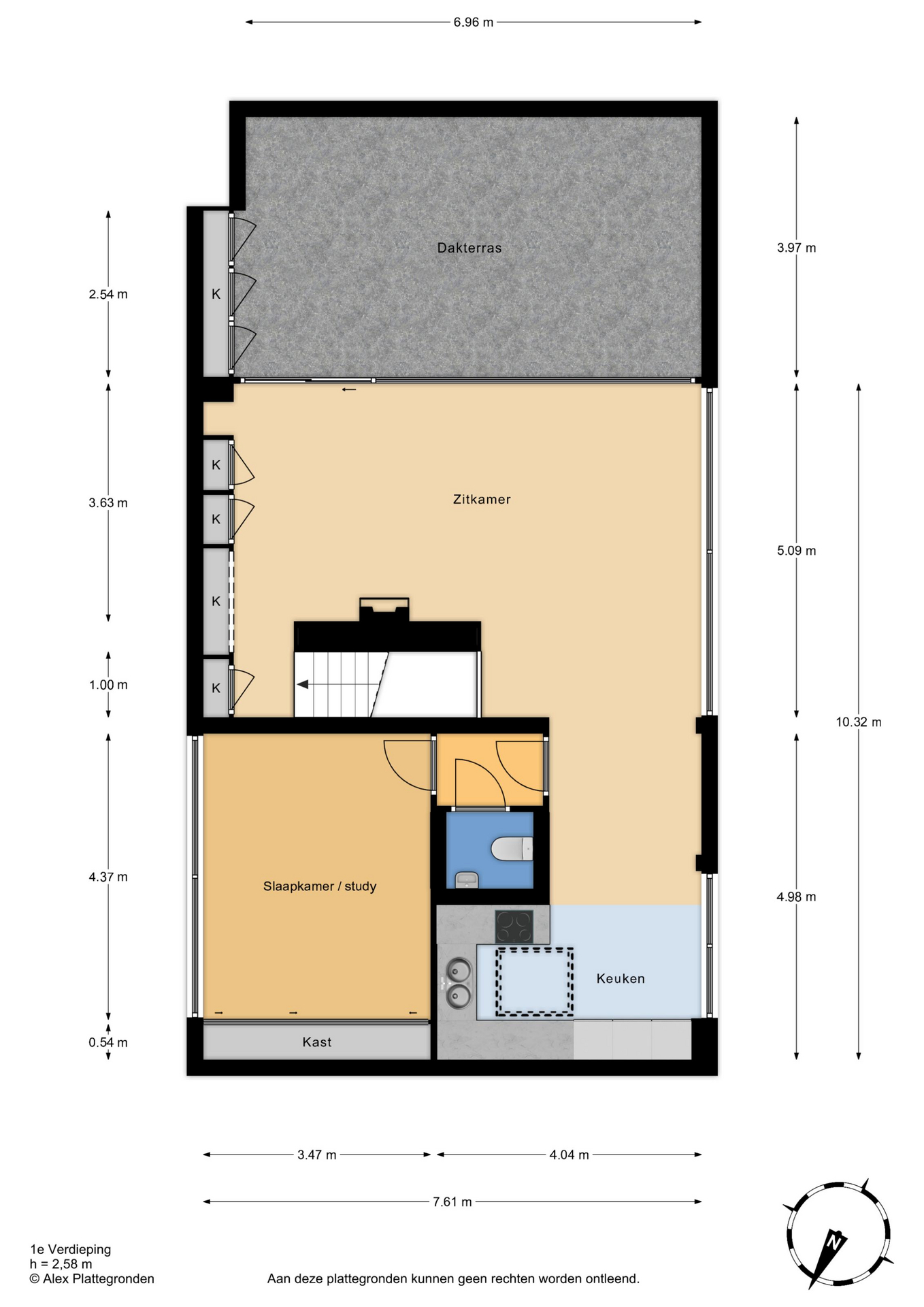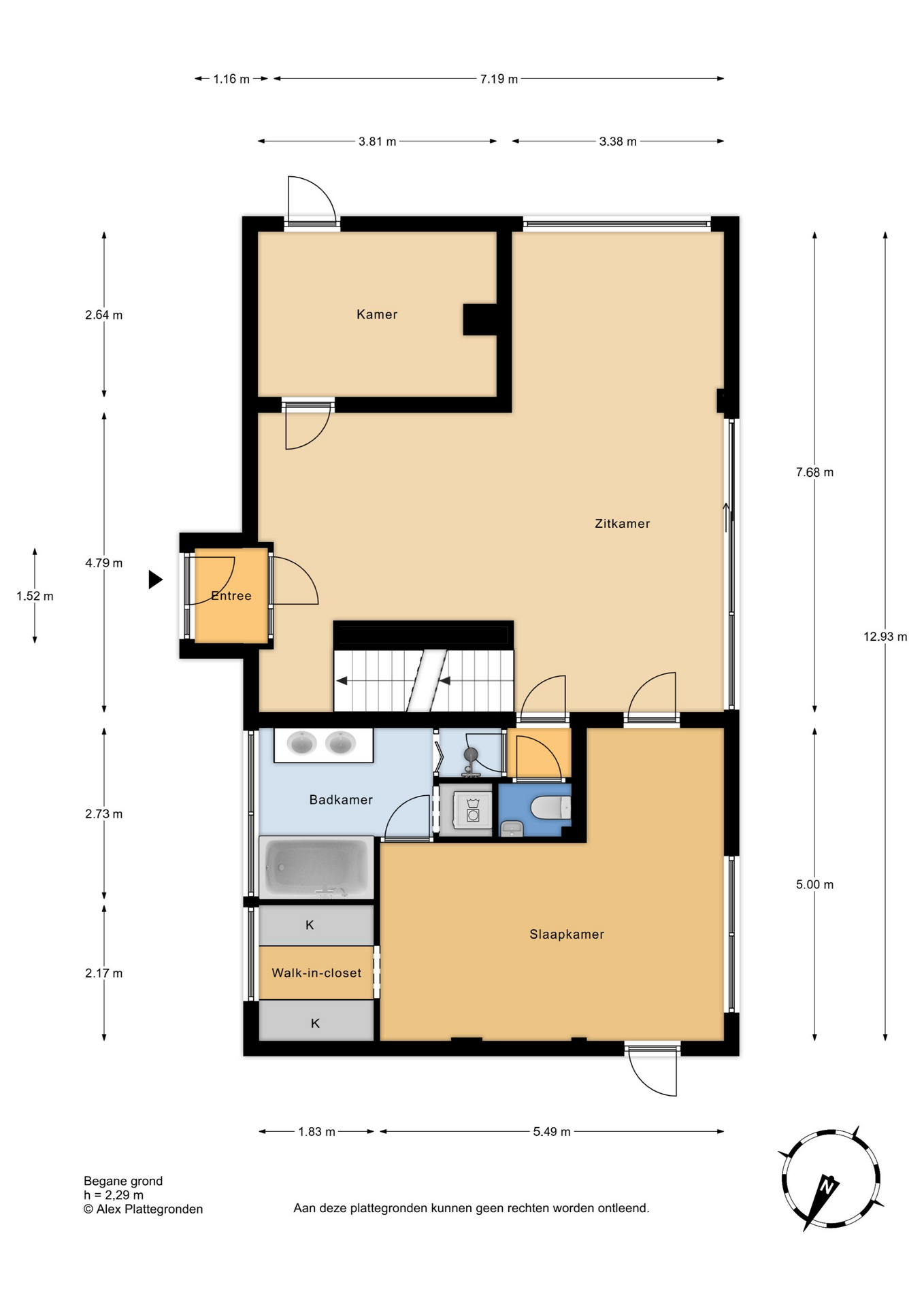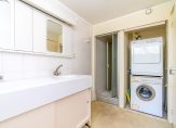 Via de voortuin de entree van de woning, vestibule met tochtdeur, tuinkamer aan de voorzijde, L-vormige tweede zitkamer eventueel in te delen als riante werkkamer, rustig gelegen slaapkamer met walk-in closet en eigen badkamer voorzien van ligbad, meubel met dubbele wastafel, inloopdouche, opstelplaats met wasmachine en apart toilet. Vanuit de hal de trap naar de kelder van ca. 19 m² met opstelplaats voor de cv-ketel.