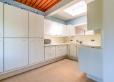 Vanuit de hal de trap naar de eerste etage, hal met apart toilet, living met spectaculaire lichtinval gesitueerd over de volledige hoek van de villa met ramen rondom en riant zonneterras aan de woonkamer van ca. 28 m². Aan de achterzijde de U-vormige keuken voorzien van groot daklicht, kunststof werkblad en inbouwapparatuur.