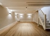 Vanuit de woonkeuken een vaste trap naar hoogwaardig afgewerkte kelderruimte totaal ca. 55 m² die door een nieuwe eigenaar ingericht kan worden als study, wijnkelder, gym of sauna.