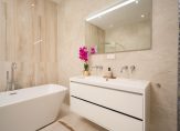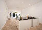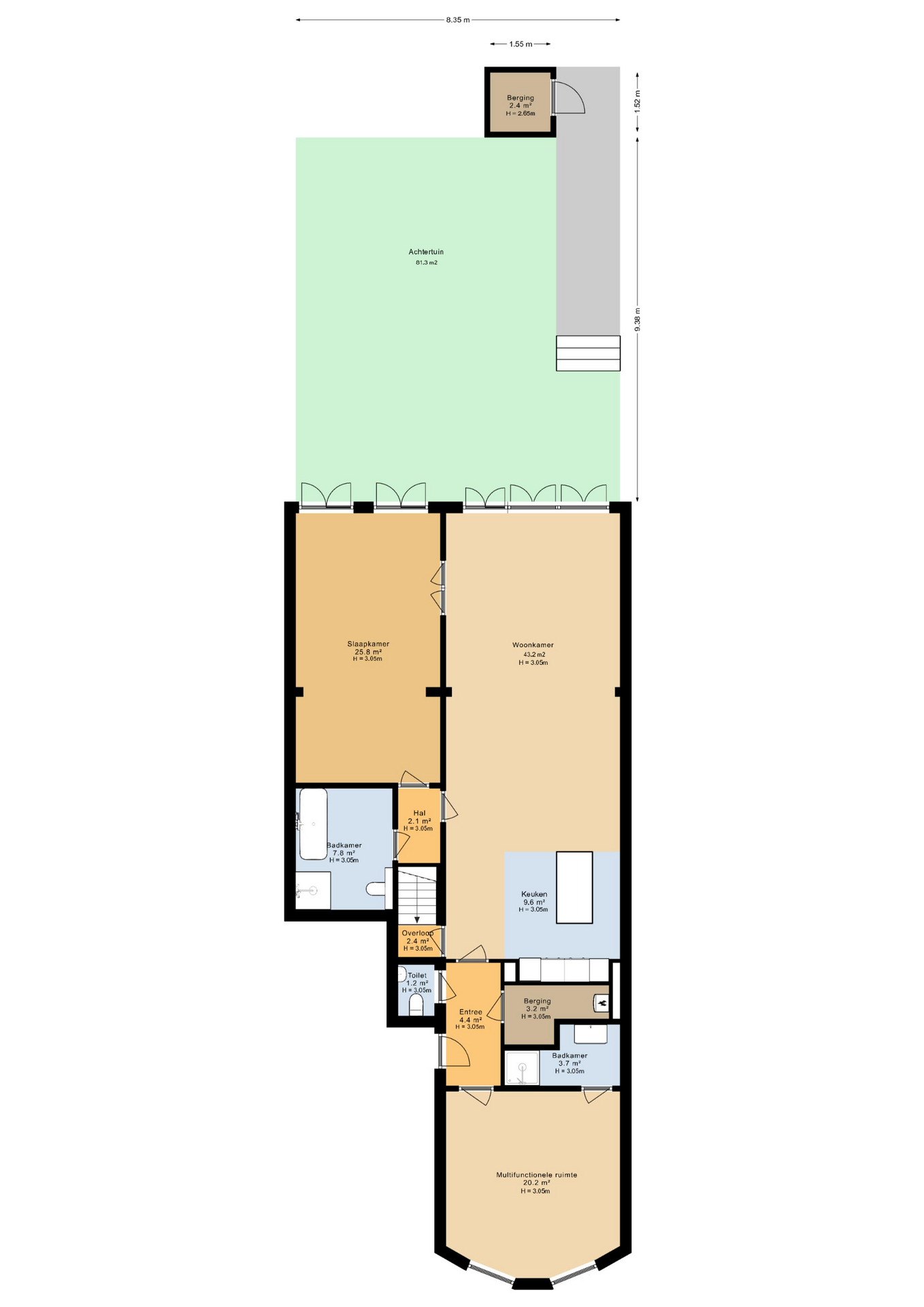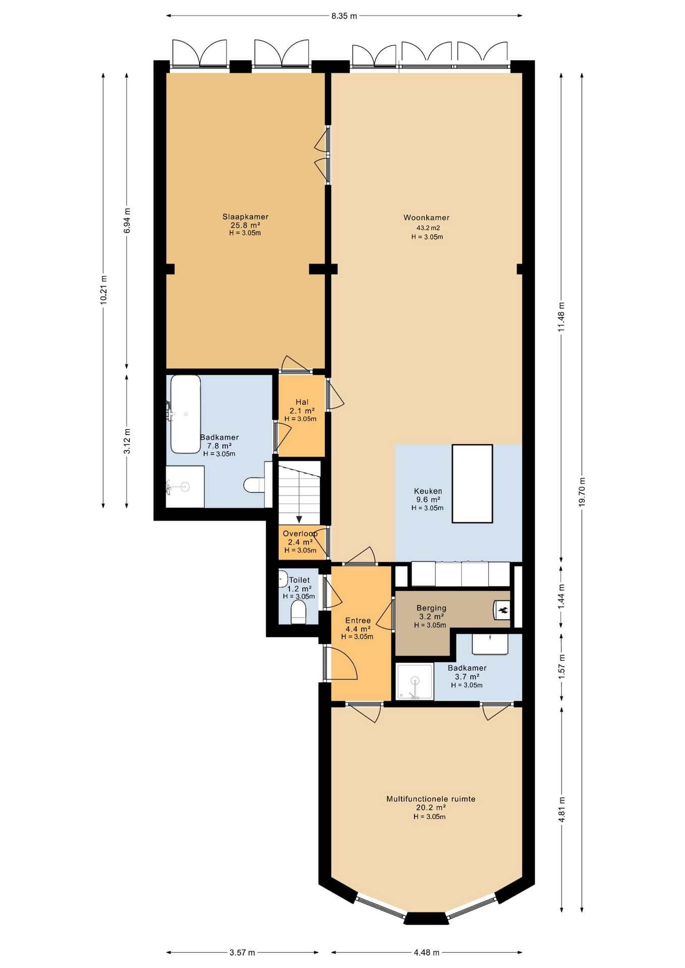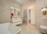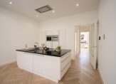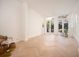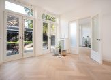 Via de voordeur op straatniveau en de imposante hal bereikt u woning. Entree appartement, ruime hal van waaruit toegang naar de zeer royale woonkamer met mooie openslaande deuren naar de tuin met uitzonderlijke maatvoering. Luxe moderne keuken met composiet aanrechtblad, voorzien van een eiland en inbouwapparatuur, waaronder combi-oven, espressomachine, vaatwasser, kokendwaterkraan (Floww), afzuigunit, 6 pits gasfornuis en koel/vriescombinatie. Riante hoofdslaapkamer rustig gelegen aan de achterzijde met bijgetrokken tussenkamer die zeer geschikt is als inloopkast, deze slaapkamer beschikt over een eigen hal met trap naar de kelder van ca. 19 m² en een luxe eigen badkamer voorzien van fraai tegelwerk, vrijstaand ligbad, meubel met dubbele kranen, handdoekradiator en inloopdouche met glazen wand. Aan de voorzijde nog een riante slaapkamer met erker, zeer gunstige lichtinval en eigen badkamer voorzien van inloopdouche en meubel met wastafel.