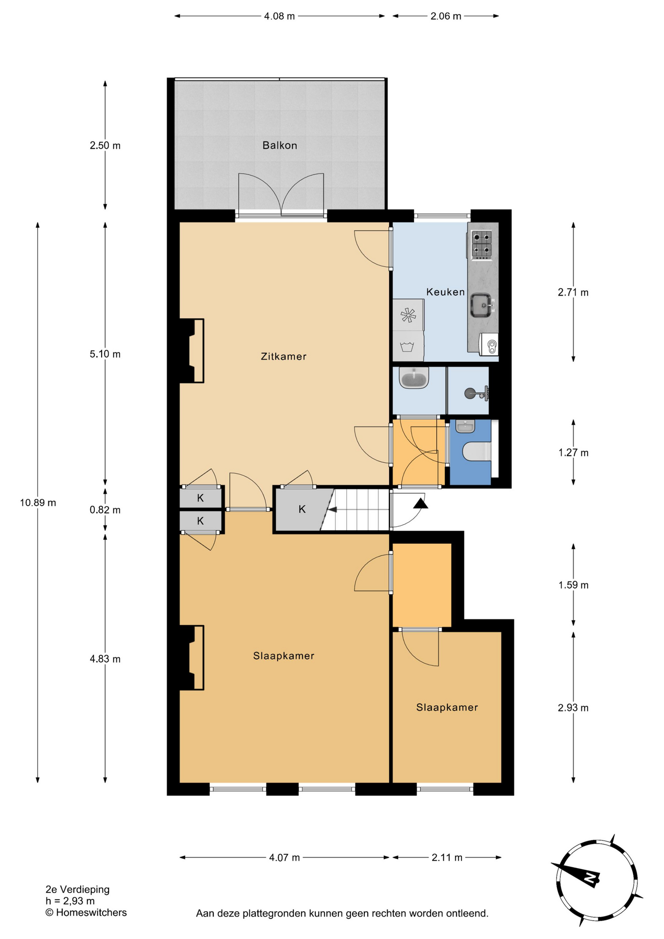 Gezamenlijke entree op de begane grond, trap naar de tweede etage, entree appartement, hal met toilet-/douchecombinatie voorzien van eenvoudig tegelwerk, woonkamer aan de achterzijde met ca. 2,93 meter hoog plafond en openslaande deuren naar achterterras. Aan de voorzijde twee slaapkamers met grote raampartijen waardoor een gunstig lichtinval is ontstaan. De keuken is aan de achterzijde gelegen en beschikt over eenvoudig keukenblok en groot met uitzicht over de achtergelegen tuinen.