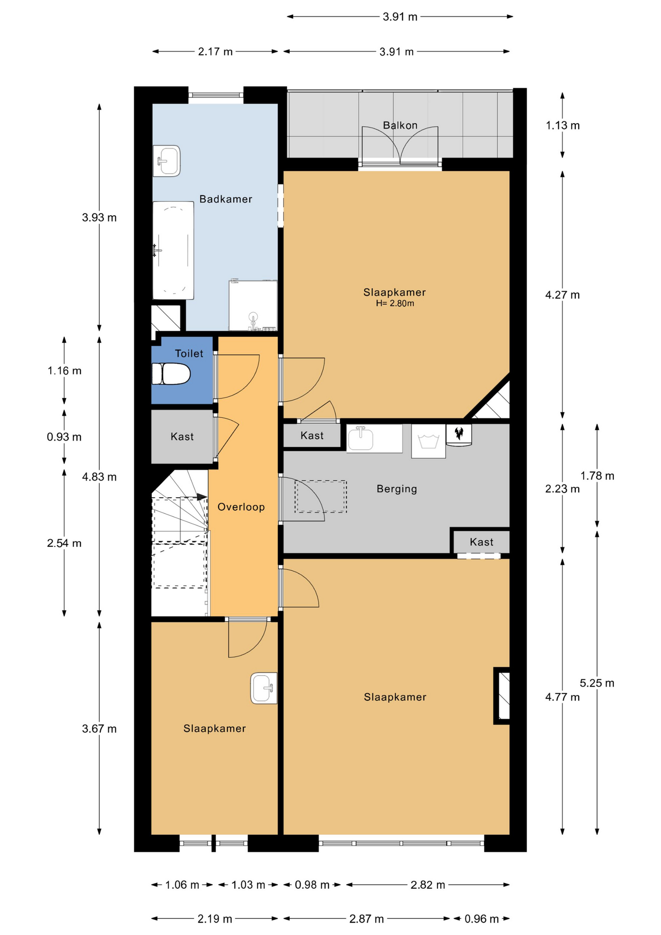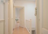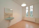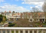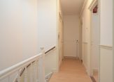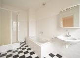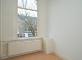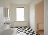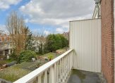 Voorts trap naar de tweede etage, overloop met groot daklicht, zijkamer aan de voorzijde, tussengelegen technische ruimte met cv-ketel en opstelplaats voor de wasmachine. Aan de achterzijde een riante slaapkamer met openslaande deuren naar zonnig balkon. De tweede ruime slaapkamer is aan de voorzijde gesitueerd en beschikt eveneens over gunstige lichtinval. De badkamer is ruim van formaat en voorzien van fraai tegelwerk, douchecabine, ligbad en wastafel met spiegel.