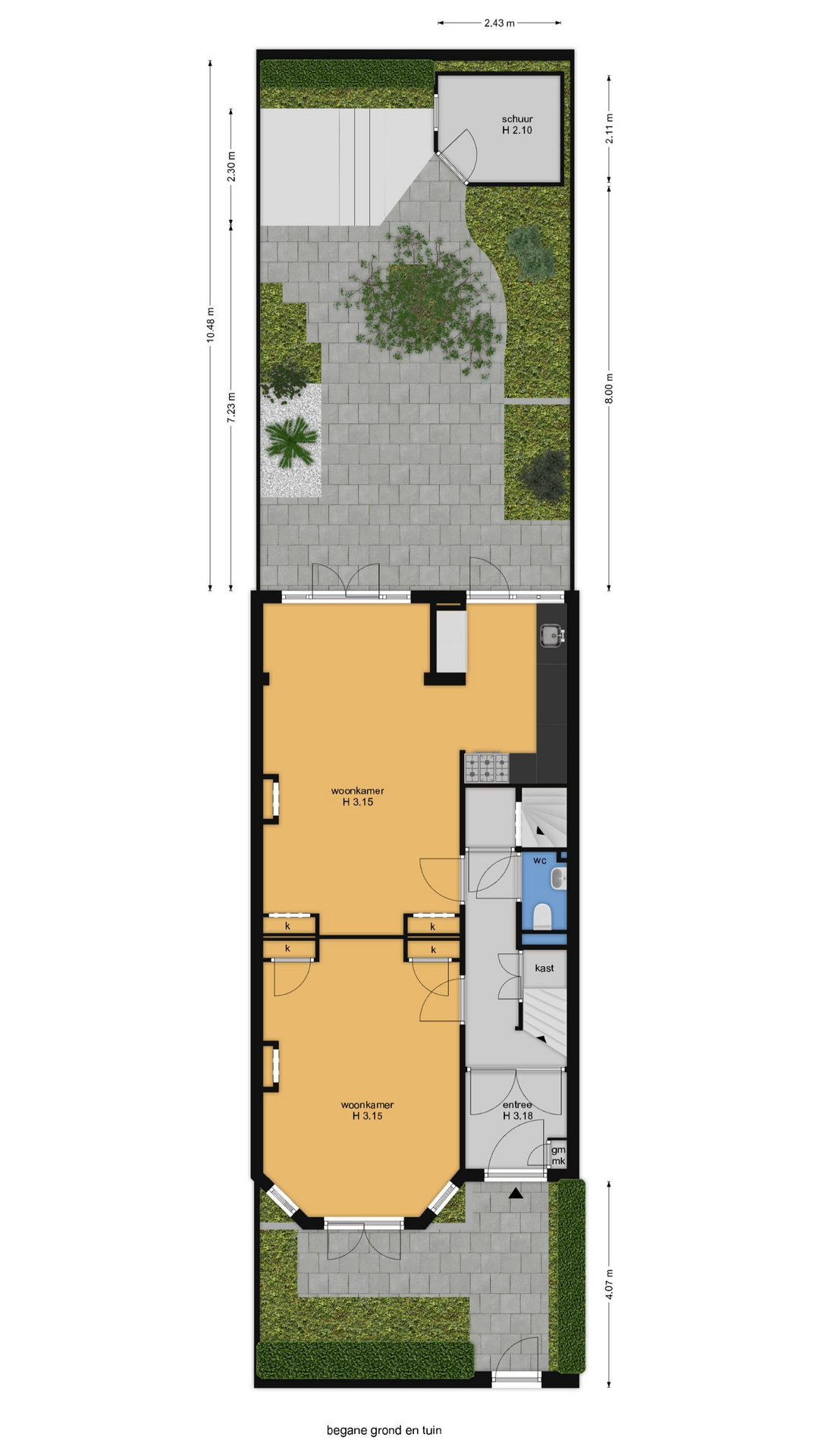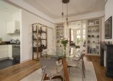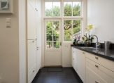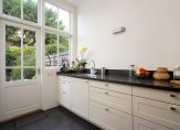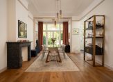 Voortuin, entree vestibule met originele wandtegels en granitovloer, meterkast, tochtseparatie naar gang eveneens met granitovloer en trapkast, toilet met fonteintje, deur naar berging en toegang tot kelder, mooie kamers en suite voorzien van schuifdeuren met glasroeden en 4 inbouwkasten, marmeren schoorsteenmantels, glas-in-lood, houten vloeren en openslaande deuren naar zowel de voor- als achtertuin, de achtertuin heeft een kleine berging, de half open luxe keuken is voorzien van alle apparatuur en geeft ook toegang tot de achtertuin.