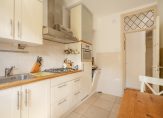 De brede keuken is voorzien van opstelplaats Cv-ketel, gaskookplaat, afzuigkap, combi oven en koelkast met vriesvakje.