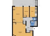 At the front of the apartment, a generously sized living room with an adjoining side room spans the full width of the property. This side room can easily be converted into a third bedroom. Via a few steps to the front garden. Two built-in storage cupboards are also present.