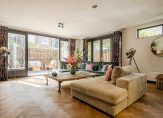 Absoluut uniek parterreappartement voorzien van ca. 186 m² gebruiksoppervlak verdeeld over stijlvolle living met fraai aangelegde zonnige hoektuin van ca. 51 m², twee riante slaapkamers, twee moderne badkamers, luxe woonkeuken met hoogwaardige apparatuur, een inpandige garage van ca. 25 m² en een kelder van ca. 24 m². De slaapkamers en de woonkamer van deze bijzondere woning zijn uitzonderlijk rustig gelegen aan de achterzijde van het gebouw zonder bovenburen.