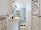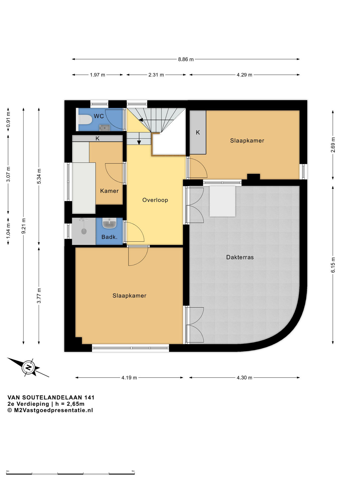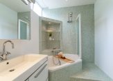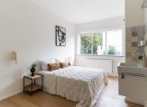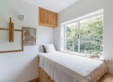 De tweede etage beschikt over een overloop met deur naar ruim dakterras, nog een knusse slaapkamer met inbouwkast en balken in het zicht, een slaapkamer met bed voorzien van onderkasten en een zesde riante slaapkamer die eveneens rustig is gelegen. Tot slot de tweede badkamer met douche en wastafel.