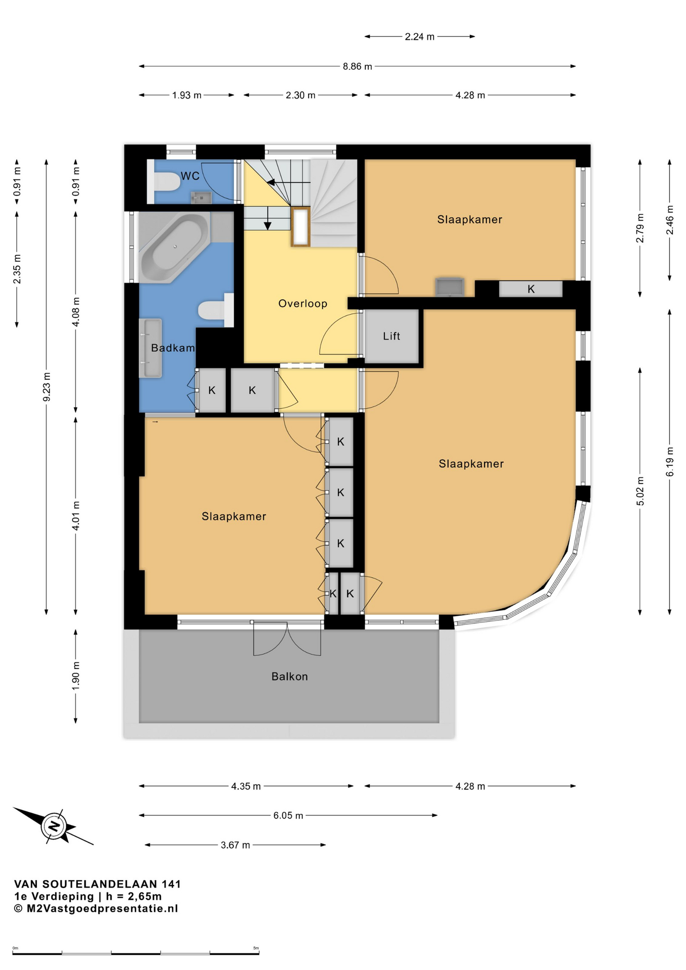 Vanuit de hal de trap naar de 1e etage, apart toilet met fraai tegelwerk, raam, wandcloset en fonteintje. Riante hoofdslaapkamer op de zuidkant gelegen met diezelfde ronde raampartij, naastgelegen tweede ruime slaapkamer met kastenwand en deur naar terras. De derde slaapkamer beschikt over meubel met wastafel en heeft eveneens uitzicht over de tuin. De moderne badkamer is voorzien van hoekbad, diverse nissen en badkamermeubel met wastafel.