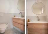 Overloop met Velux raam en modern toilet met wastafelmeubel (eventueel uit te breiden met douche).