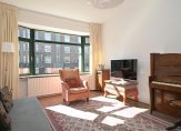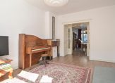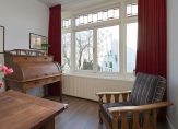Open portiek met trap naar de eerste etage, entree appartement, hal met vestibule, meterkast met uitgebreide elektrische installatie en ruim toilet voorzien van fraai tegelwerk, wandcloset en fontein met ingebouwd leidingwerk. Vanuit de hal de sfeervolle kamers en suite met gunstige lichtinval, erker aan de voorzijde, strak stucwerk, karakteristieke glas in lood bovenlichten, markiezen aan de voorzijde en suite separatie met glas in lood schuifdeuren en vaste kasten aan beide zijden.