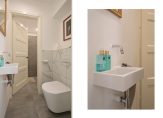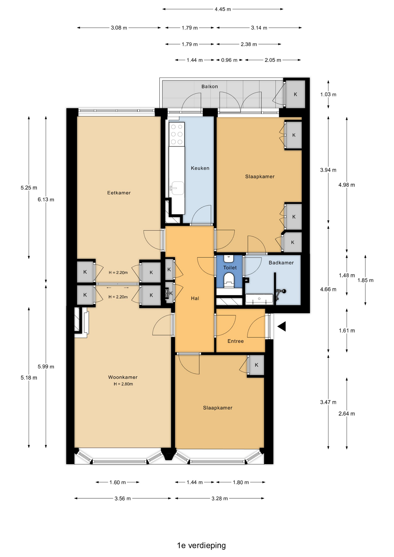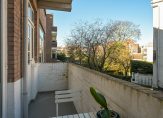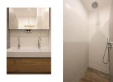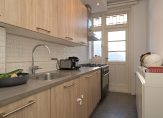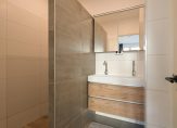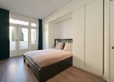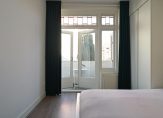 De luxe keuken is voorzien van deur naar achterbalkon met balkonkast, zwart 6-pits gasfornuis met brede oven, rvs afzuigkap, koelkast en vaatwasser. Aan de achterzijde is de hoofdslaapkamer gesitueerd die is voorzien van maatwerk kastenwand, openslaande deuren naar balkon en grote raampartijen met glas in lood bovenlichten. De tweede slaapkamer heeft eveneens een mooie maatvoering en beschikt over een vaste kast. De tussengelegen badkamer is in 2017 vervangen en voorzien van fraai tegelwerk, badkamermeubel met twee kranen, spiegelkast en inloopdouche met ingebouwd leidingwerk.