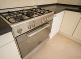 Eigen entree op straatniveau, ruime hal met toilet, dubbele deuren met glasroedeverdeling naar woonkamer over de volle breedte van de woning. Vrijwel de gehele achterzijde beschikt over raampartijen waardoor een zeer gunstige lichtinval ontstaat. De open keuken beschikt over hardstenen werkblad, 5-pits gasfornuis met brede oven, rvs afzuigkap en vaatwasser.