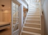Vanuit de woonkamer de trap naar het souterrain, gang met deur voorzien van glasroedeverdeling naar hoofdslaapkamer met ingebouwde kastenwand en eigen badkamer voor zien van toilet, wastafel en douche. De tweede slaapkamer is eveneens rustig gelegen en voorzien van kastenwand en eigen badkamer voorzien van ligbad, wastafel, douche en toilet.