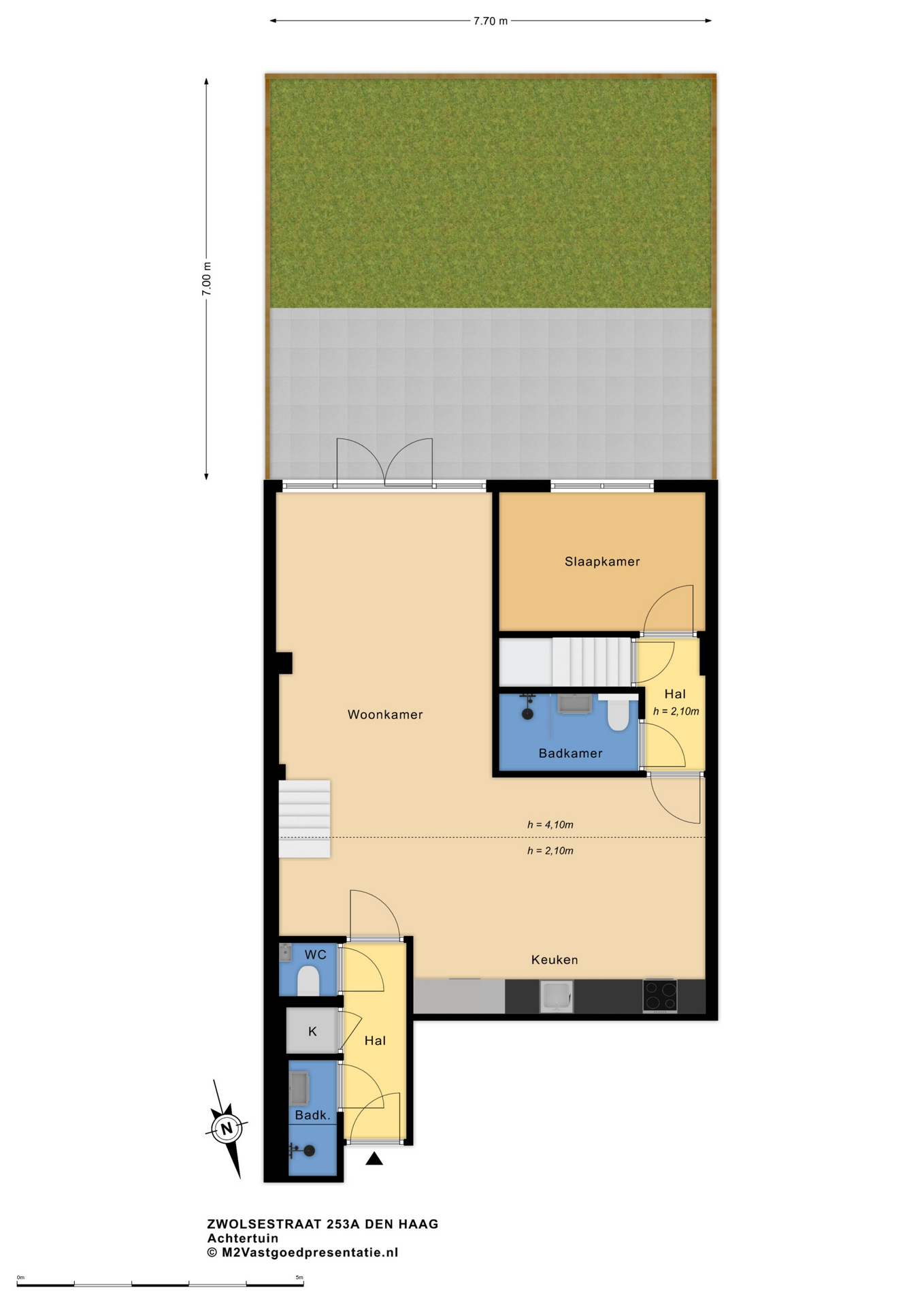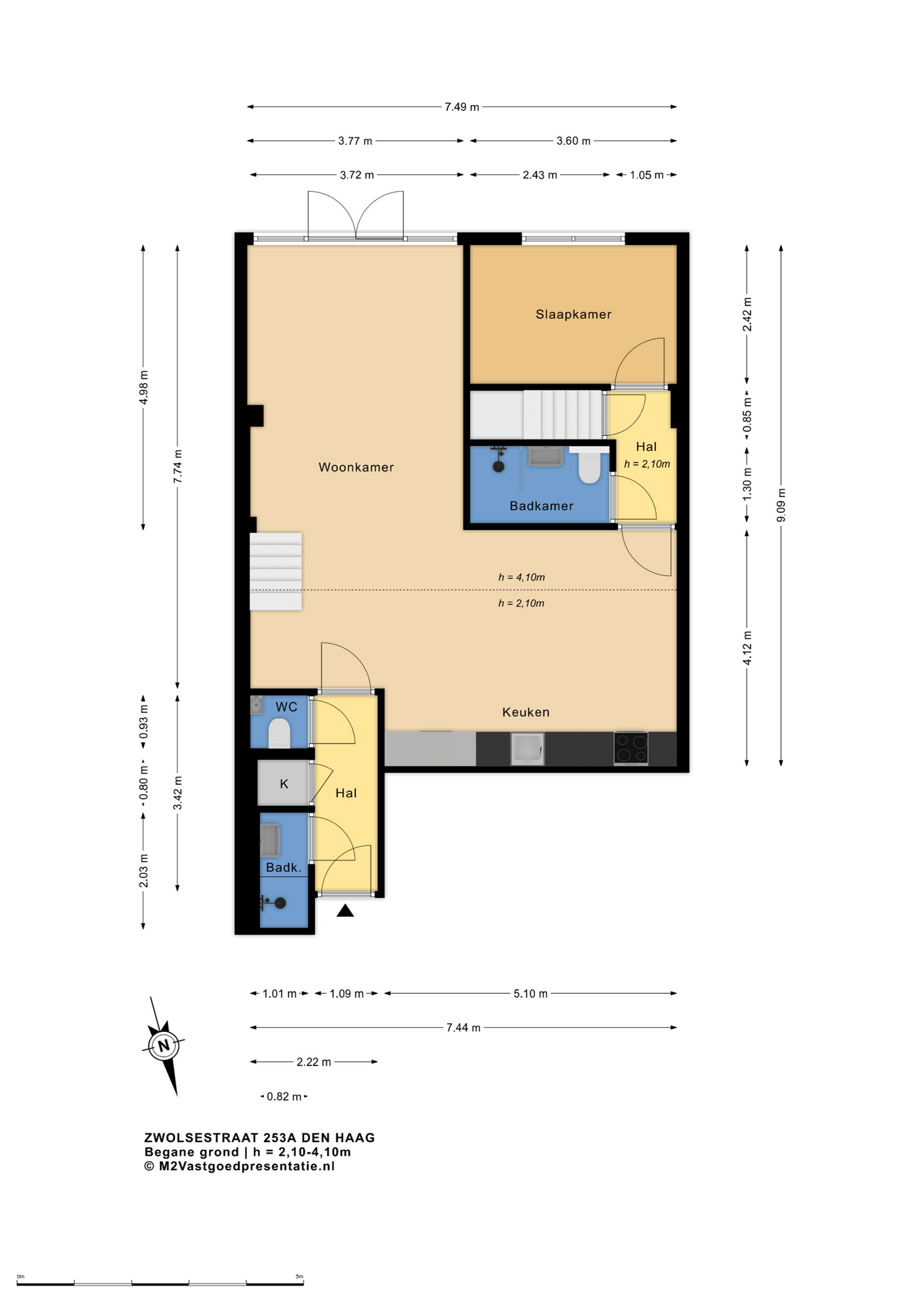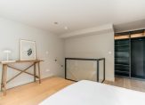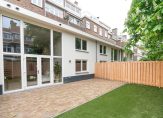 Entree complex voor 253/253a, entree appartement, hal met garderobekast, toilet met fraai tegelwerk, wandtoilet en fonteintje. Gastenbadkamer in de hal en tevens perfect geschikt voor na het surfen, deze badkamer is voorzien van hoogwaardig tegelwerk, inloopdouche en meubel met waskom. Vanuit de hal de indrukwekkende living met een plafondhoogte van ca. 4,1 meter waarbij de gigantische raampartij aan de achterzijde voor een spectaculaire lichtinval zorgt. Vanuit de woonkamer openslaande deuren naar de riante achtertuin van ca. 54 m² die heerlijk op de middag- en avondzon is gelegen. In de woonkamer is een entresol geplaatst die op meerdere manieren valt te gebruiken, bijvoorbeeld als zitkamer, riante werkkamer of hoofdslaapkamer. Onder de entresol is de luxe keuken gerealiseerd met hardstenen werkblad en hoogwaardige inbouwapparatuur.